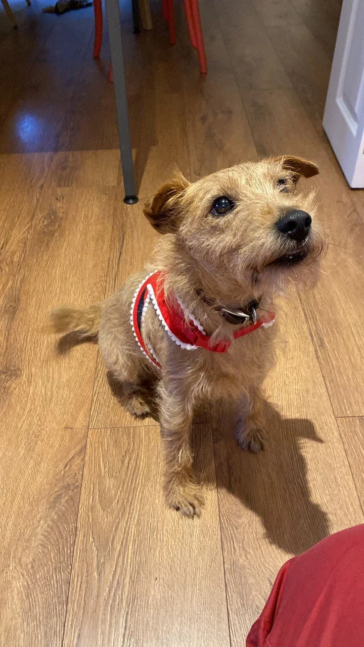 Darcy (James’ dog) showing her Christmas begging face….!!