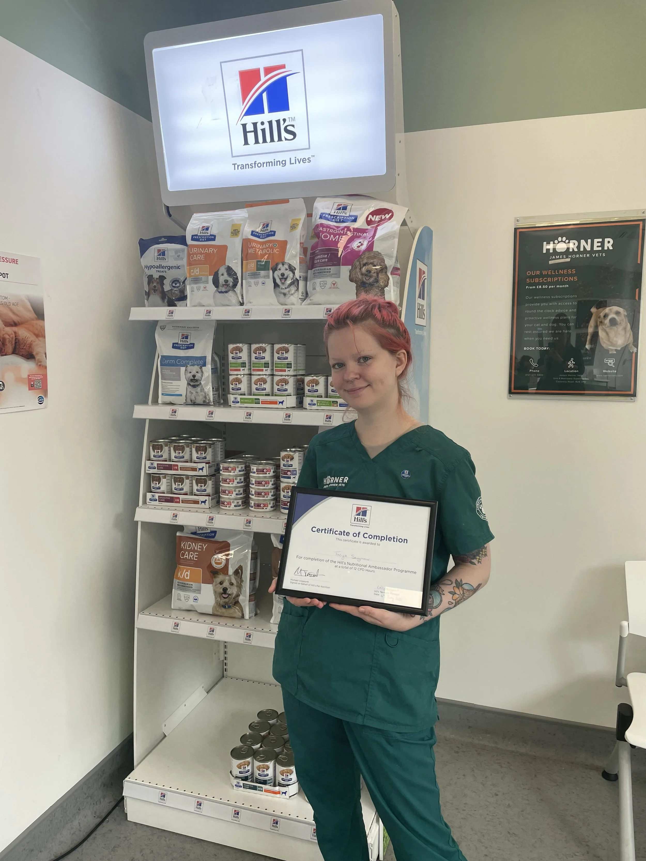 Senior Receptionist Freya has completed the ‘Nutritional Ambassador Programme’ via Hills UK & IRE! Well done Freya, another badge and certificate to add to your collection!