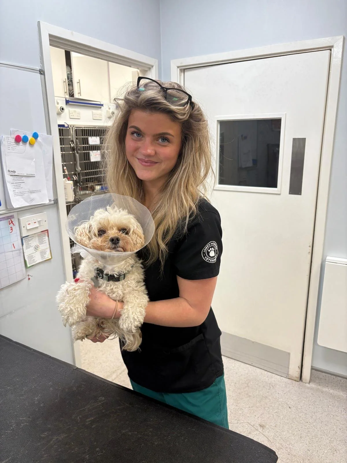 “I'm from a small village in Tamworth, if there's one thing, I'm certain about it's that is my love for animals! This passion has been with me my whole life, which is why I'm so excited to peruse my dream of working with them. At home, my furry family includes 2 adorable dogs and a charming cat! 🐾 I applied here because I admire this practice amazing values and the team! I just know I'll be able to absolutely thrive and achieve wonderful things here!“