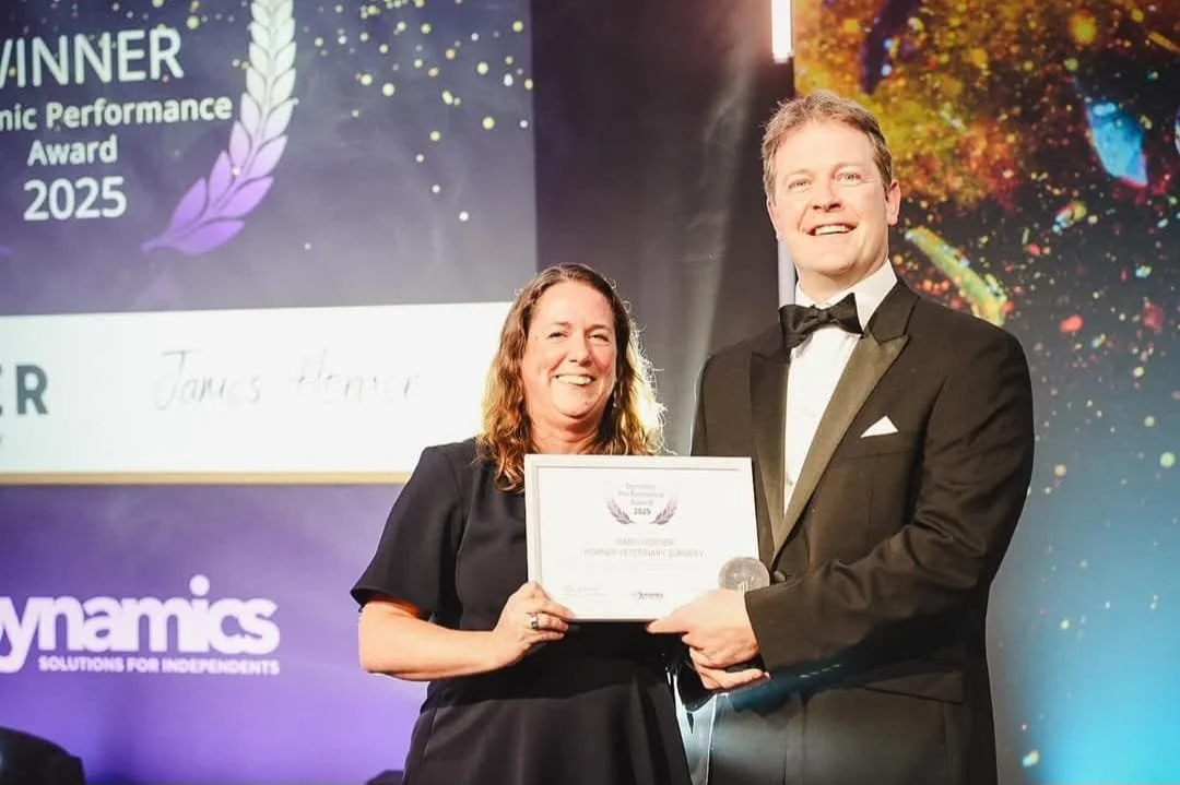 James and Kat recently attended the Vet Dynamics 2025 conference and we are thrilled to announce that as part of the 'Dynamic Vet Business Awards' James won the 'Dynamic Performance Award' for demonstrating outstanding commitment, planning and leadership in the pursuit of clinical excellence, financial stability, team development and business growth opportunities! Well done James!