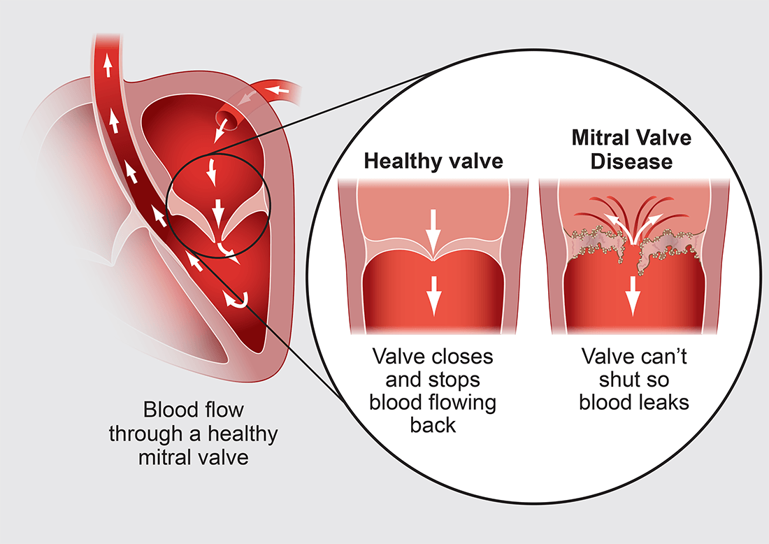 The mitral valve is one of the heart’s key components. It is responsible for ensuring blood flows in the correct direction between the heart’s chambers. In MVD, the valve becomes thickened and deformed, causing it to leak. This leakage leads to a backflow of blood, which means the heart has to work harder, eventually leading to heart enlargement and ultimately heart failure.